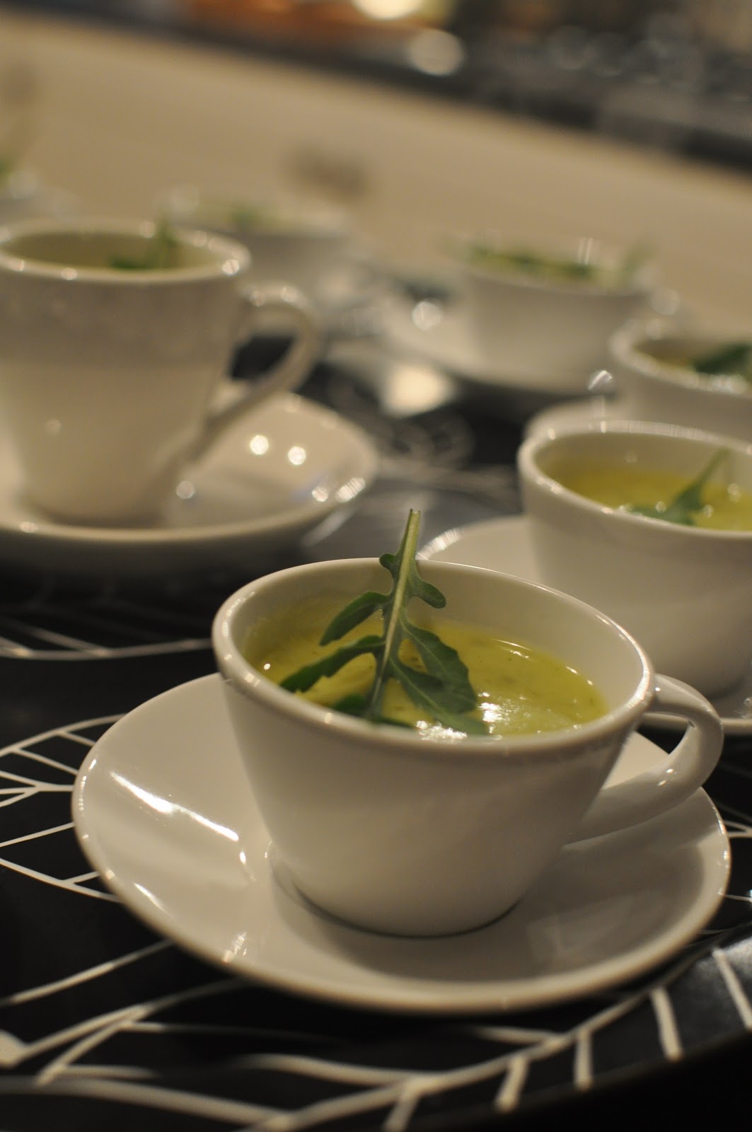 To amuse: Rocket, courgette soup with goat's cheese.